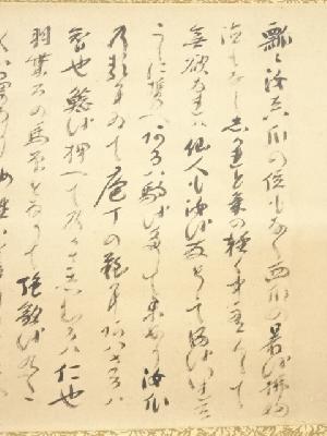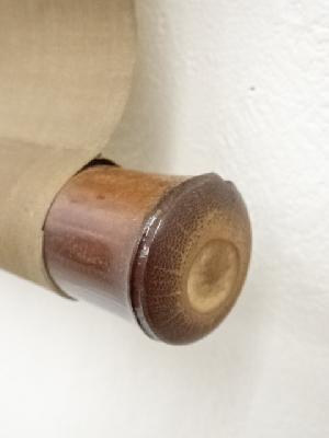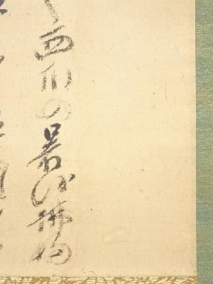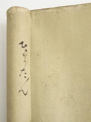 表具裏の全体に焼け、ところどころにシミ、上部に擦れ剥がれがあります。