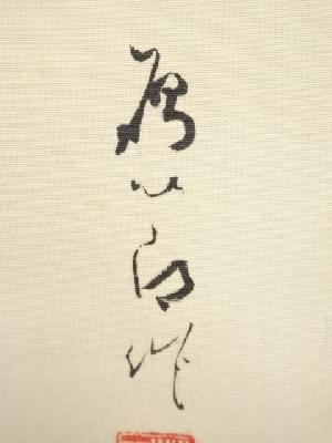 表具表左側にシミがあり、表具裏のところどころに薄くシミがあります。