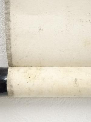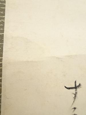 表具表のところどころに擦れがあり、表具裏全体に薄いシミ、汚れがあります。