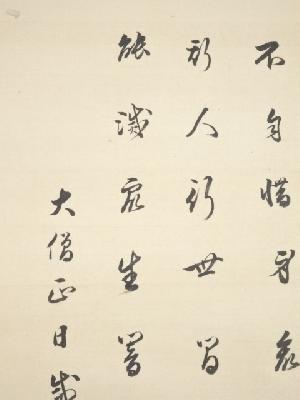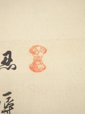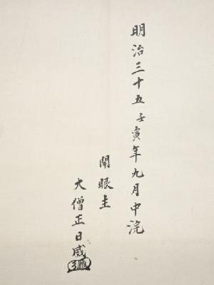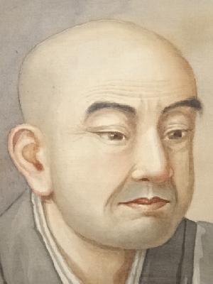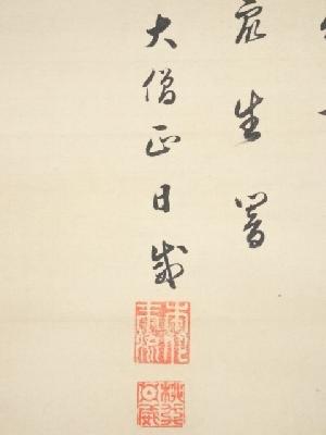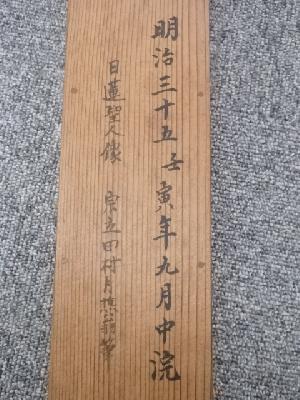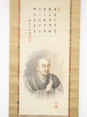 金子日威賛 日蓮大菩薩御肖像 肉筆絹本掛軸(金子日威裏書有)(箱付)