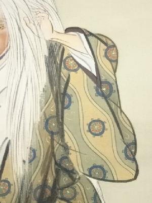 大熊秀斎筆 山姥図 生一左兵衛賛書 肉筆絹本掛軸(共箱・二重箱)