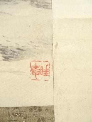 戊戌(1838年) 浦上春琴筆 山水 肉筆絹本掛軸(保護箱)