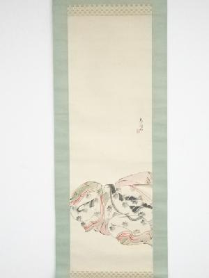生田花朝筆 美人 肉筆絹本掛軸(保護箱)