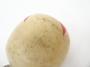 全体的にシミ汚れがあり、頭部のロウが白くなっています。