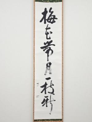 武者小路千家十三代有隣斎筆 「梅花帯月一枝新」一行書 肉筆紙本掛軸(共箱)
