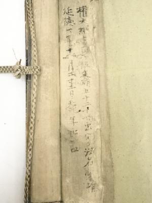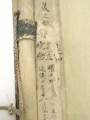 軸、木箱ともに、擦れや虫食いなど、経年による劣化があります。