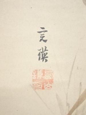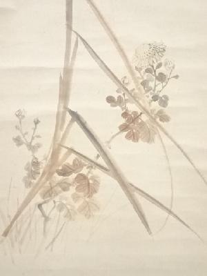 西山完瑛画 穂芒霜菊図 荷田甕満賛書 肉筆紙本掛軸(武部白鳳箱書)