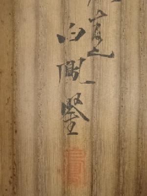 また、表具表全体に薄く汚れがあり、表具裏上部にシミとスレ破れがあります。