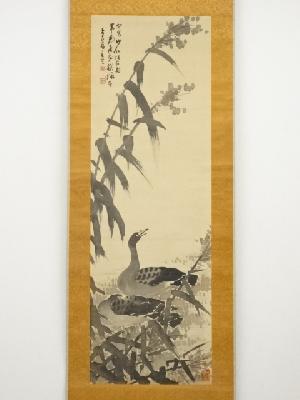田結荘千里筆 芦雁図 肉筆絹本掛軸(保護箱)