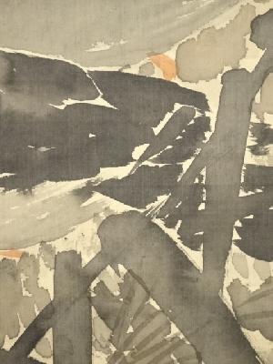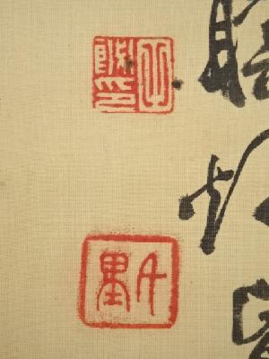 また、表具表の上部に少し剥がれがあり、表具裏上部にスレ破れがあります。