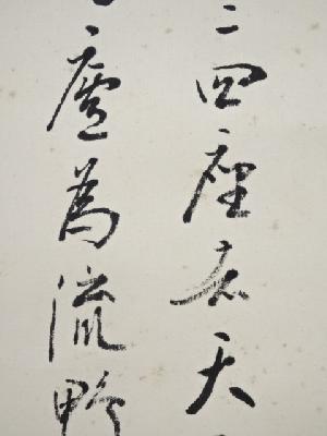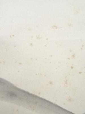 本体:本紙と表具裏ともに全体にシミがあり、巻き跡による折れがあります。