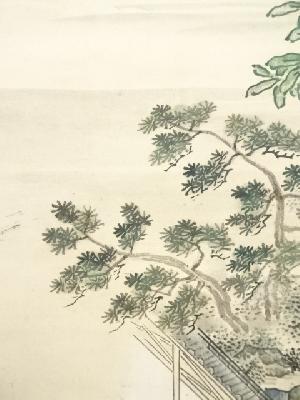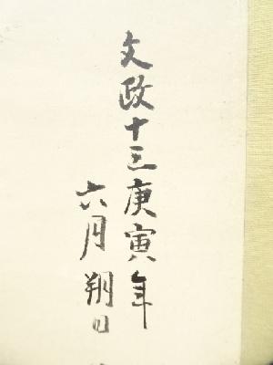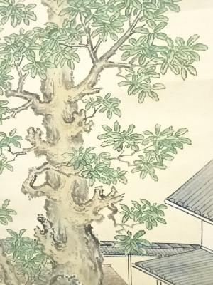 文政13(1830)年 片山索準斎守規筆 庭園槲樹図 肉筆紙本掛軸(箱付)