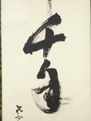 大徳寺立花大亀筆 「鶴舞千年松」一行書 肉筆紙本掛軸(共箱)