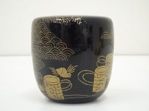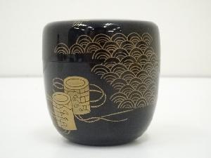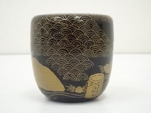 荒井喜峰造 汐汲蒔絵内銀溜利休棗(共箱)