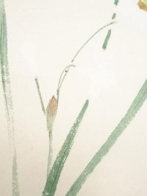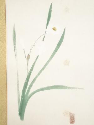 石川晴彦筆 水仙 肉筆紙本掛軸(共箱)