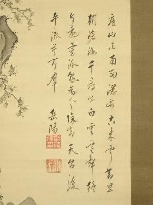 澹空岳陽筆 観瀑図 肉筆絹本掛軸