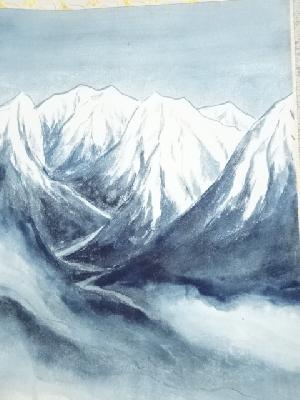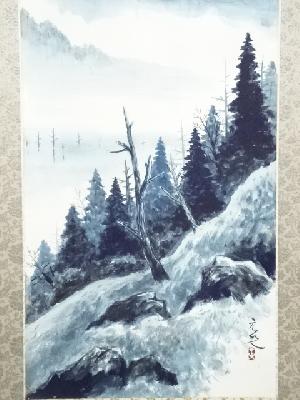 杉原元人筆 上高地 太巻 肉筆紙本掛軸(共箱・二重箱)