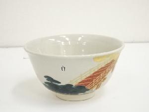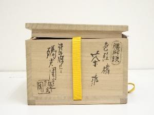 膳所焼 岩崎新定造 色絵橋之画茶碗(堀内家十二代兼中斎書付)(共箱)
