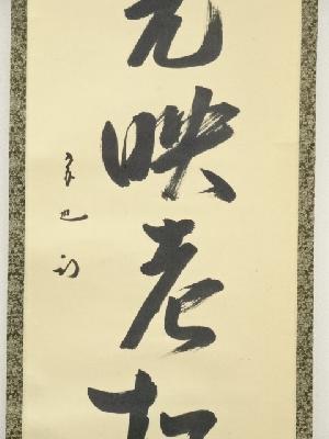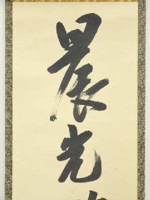 久田家十二代尋牛斎筆 「晨光映老松」一行書 肉筆紙本掛軸(共箱)