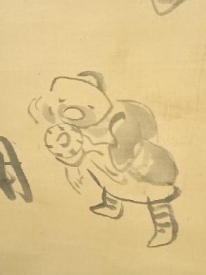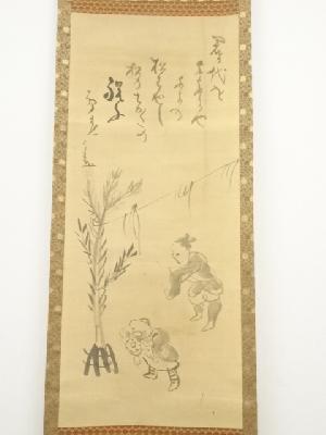仙厓義梵筆 萬歳 肉筆絹本掛軸(保護箱)