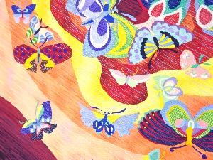 北尾織物製 本綴れ蝶模様織り出しタペストリー「蝶の舞」