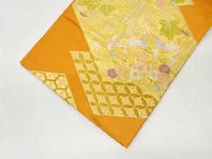 山口織物製 変わり松皮菱に松竹梅・鶴模様織出し袋帯