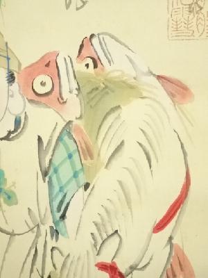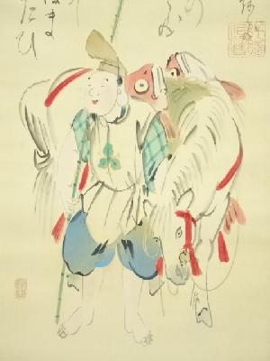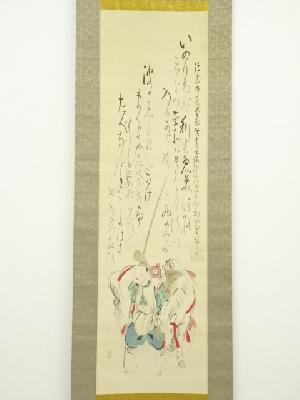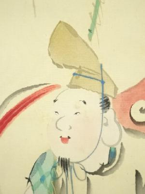 菅楯彦筆 恵比須図 太巻 肉筆絹本掛軸(生田花朝箱書・二重箱)