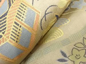 アンティーク 家屋に草花模様織出し名古屋帯(材料)