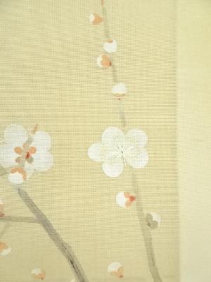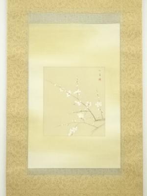 上村松篁筆 白梅 太巻 肉筆絹本掛軸(共箱・二重箱)
