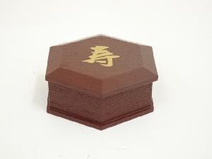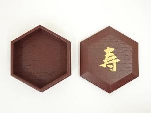 哲公房造 溜塗寿字六角香合(而妙斎花押有)(共箱)
