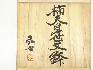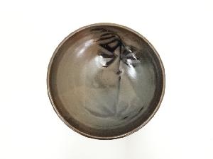 丹波焼 市野弘之造 柿天目笹文鉢(共箱)