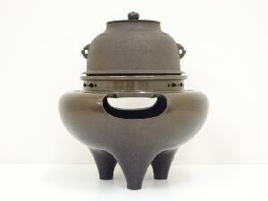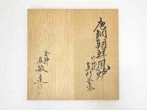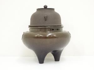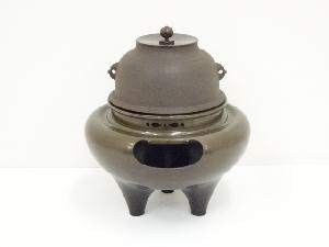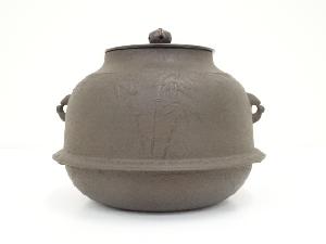 釜師 橋本辰敏造 唐銅朝鮮風炉・竹地紋真形釜添(共箱)