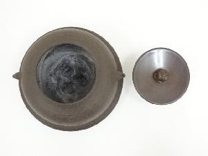 釜の蓋にうすいスレがあり、つまみ部分に若干緑青があります。