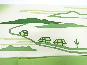 アンティーク 塩瀬田舎風景模様名古屋帯