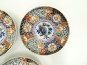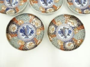 明治期 古伊万里 染錦青海波鳳凰文五寸皿5客