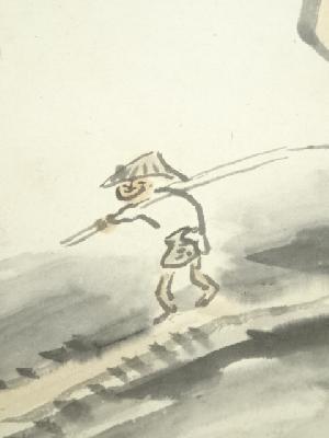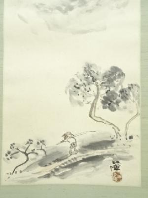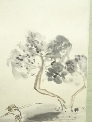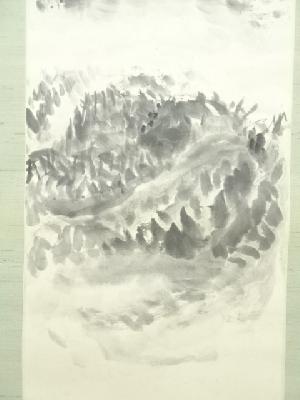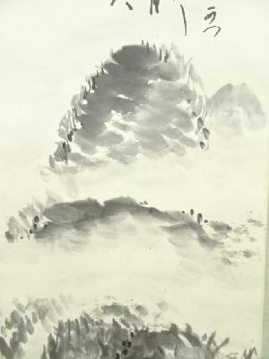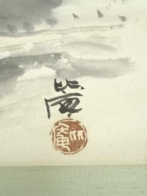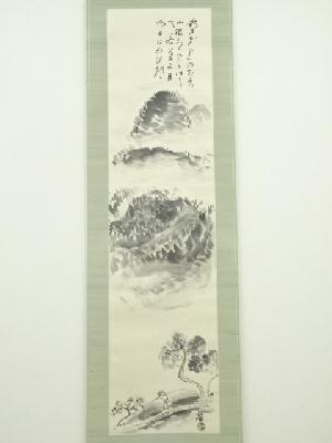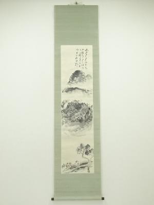 清水比庵筆 山水図 太巻 肉筆紙本掛軸(保護箱)