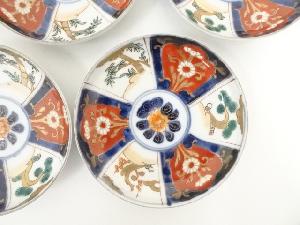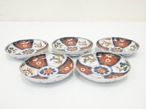 明治期 伊万里焼 染錦松竹梅文小皿5客