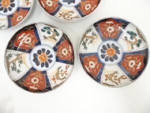 明治期 伊万里焼 染錦松竹梅文小皿5客