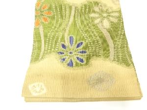 太鼓部分の裏面は別布ではぎ合わせが有ります。 帯幅部分にシミが有ります。 状態は大変良いです。 材料としては十分お使い頂けます。 材料用の出品となりますので、薄アク、糊アク、薄ヤケ、くすみなどがあります。 力のない物、破れ、致命的な汚れ以外は記載しておりません。 写真を多数撮っておりますので、ご参照の上、ご判断ください。 採寸・検品:小笠原・星 撮影:寺原 ※検索一覧と詳細ページにおいて、色の見え方が異なることがございます。 お進み頂いた詳細ページの商品の色が、より実物に近い色でございます。予めご理解ください。