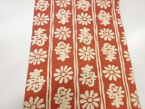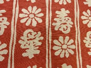 アンティーク 手織り紬型染寿に花模様名古屋帯
