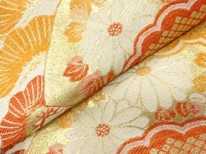 アンティーク 地紙に松梅・菊模様織出し名古屋帯(材料)