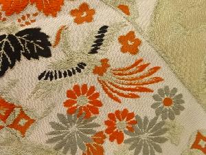 アンティーク 波に花鳥模様織出し名古屋帯(材料)