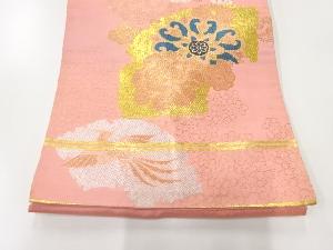 アンティーク 破れ色紙に花鳥模様織出し名古屋帯(材料)