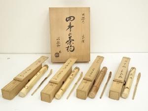 大徳寺高僧書付 四季の茶杓4本組(銘:陽炎・岩清水・秋灯・笹鳴)(共箱)