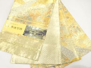 未使用品 佐賀錦 山並に鶴・牡丹模様織り出し袋帯(未仕立て)