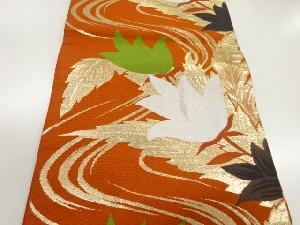 アンティーク 流水に草花模様織出し開き名古屋帯(額縁仕立て)(着用可)