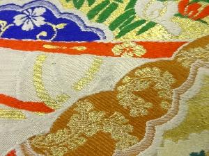 アンティーク 扇に菊・牡丹模様織出し名古屋帯(材料)