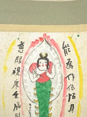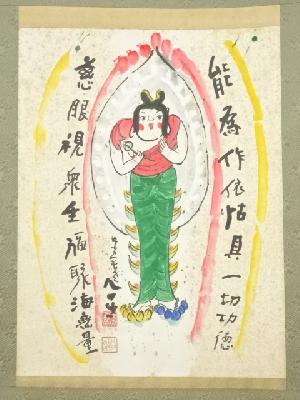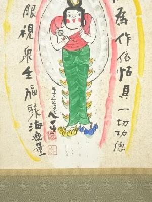 東大寺 清水公照筆 「福寿海」仏画賛 肉筆紙本掛軸(共箱)