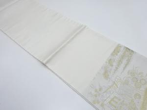 未使用品 霞に御所車・草花模様織り出し袋帯(未仕立て)