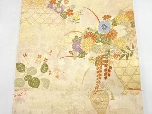 未使用品 引箔 草木染 花瓶に光悦垣模様織り出し 袋帯